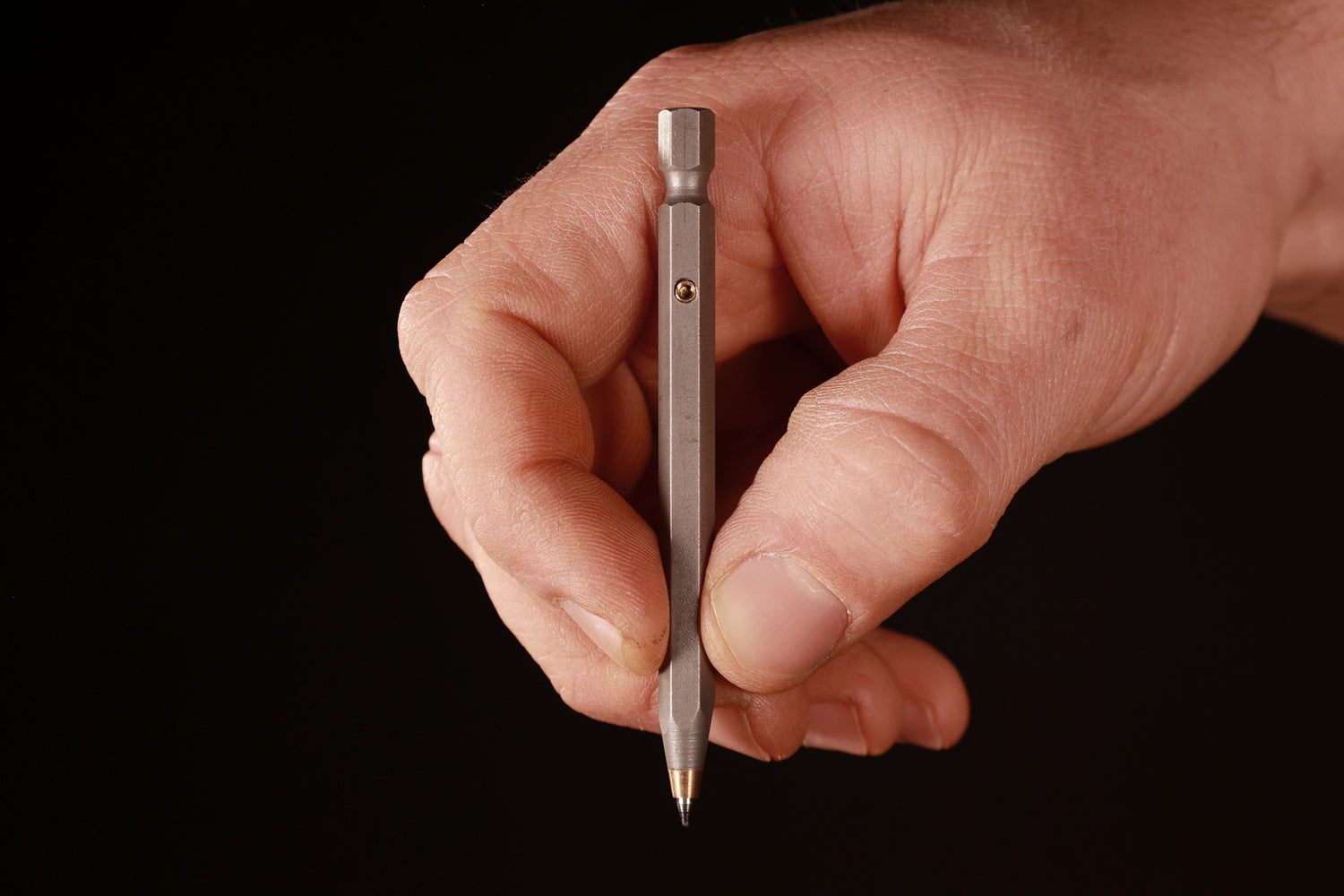 Every diamond driver will contain the minimal EDC Hex Pen. This made from the same tool steel as the other bits and is equipped with a durable broad tip D1 style refill that is perfect for making marks or notes. The refill can easily be replaced by undoing the brass setscrew on the side of the pen.