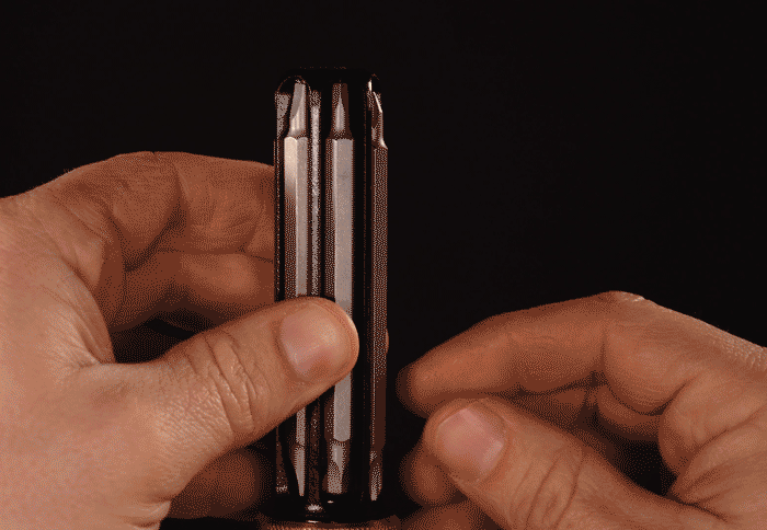 capable of holding up to 12 different screwdriver tips.